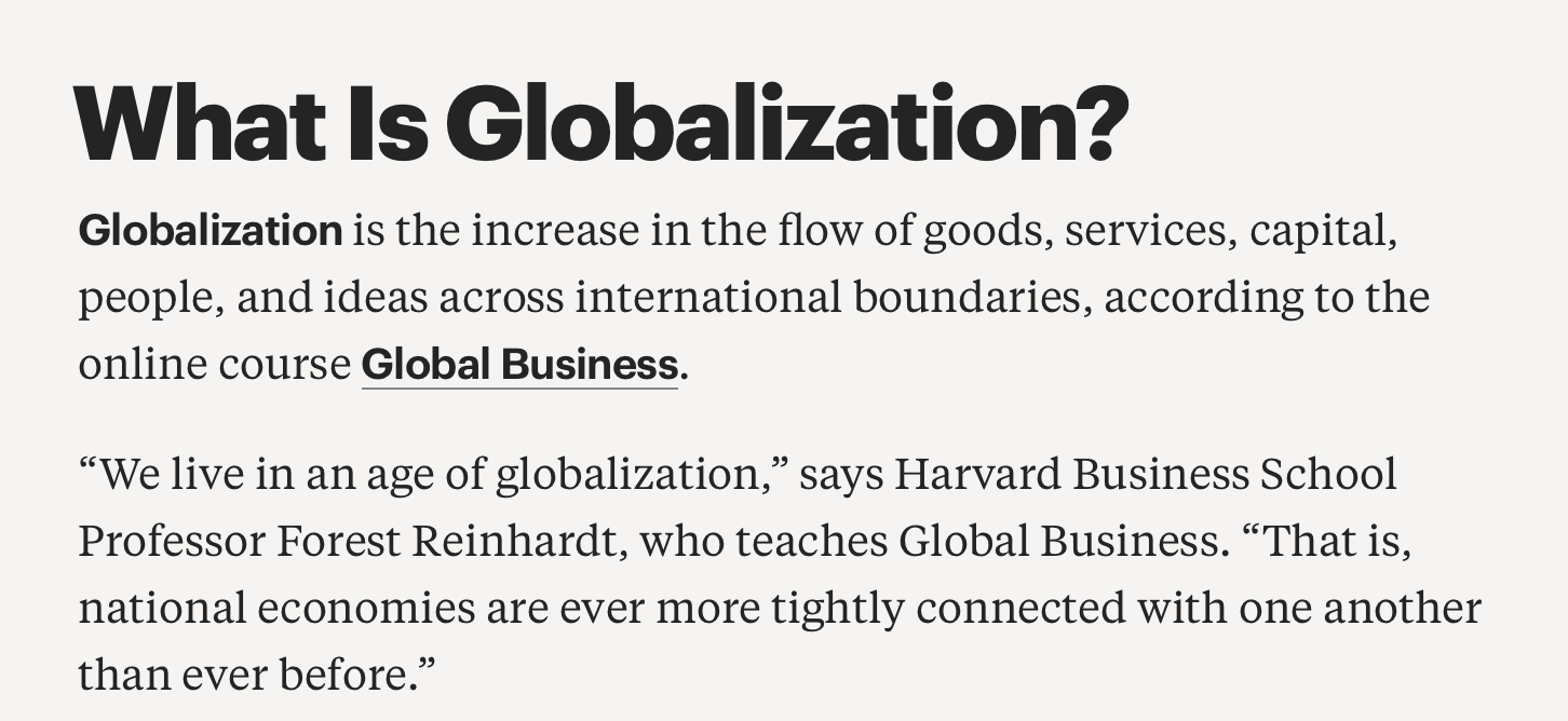 Where "... the flow of goods, services, capital, people and ideas across international boundaries."